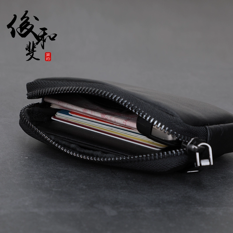 xmyb European and American cowhide handmade simple zipper coin purse Genuine leather short wallet driver's license bag card bag small handbag