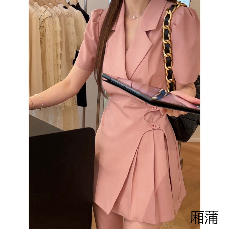 | nameOriginal | Xp European French Temperament Socialite Suit Pleated dress Women's Summer Waist Slimming Pink Wear Short |