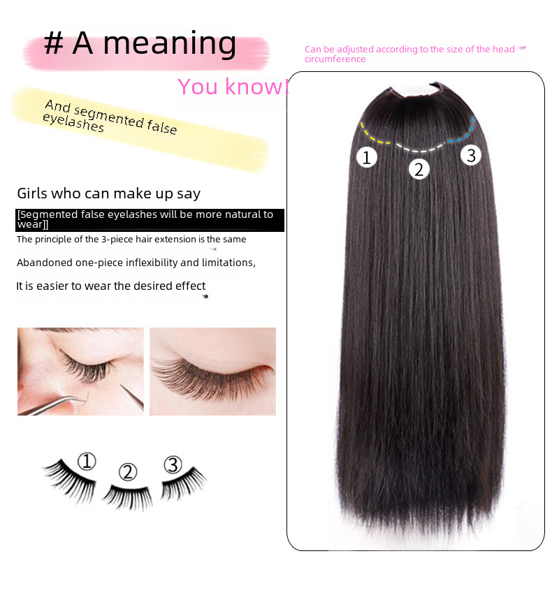 | nameOriginal | Xuchang wig piece one piece women's long straight hair quantity multiple wig piece three piece clip hair simulation extension piece |
