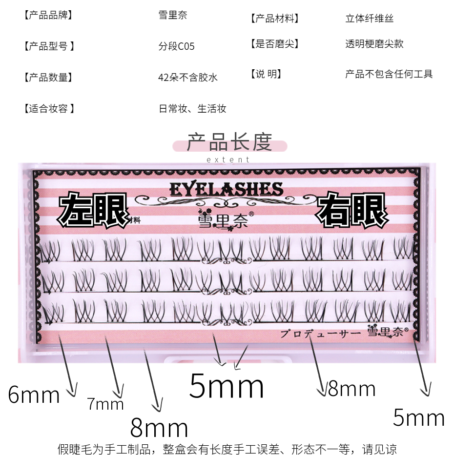 | nameOriginal | Xue Rina c05 is the girl group's V-shaped segmented single-cluster transparent stem false eyelashes that everyone is looking for, natural simulation |
