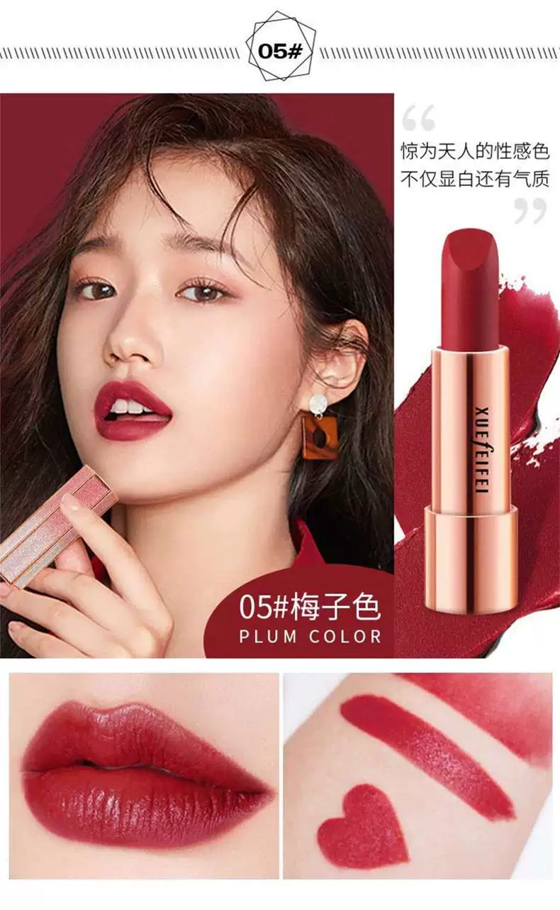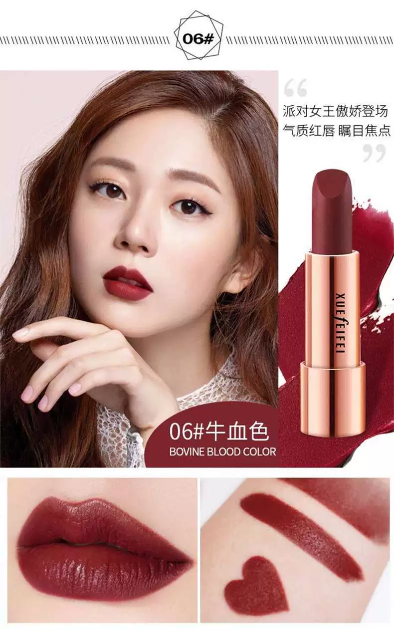 Xuefifei starry sky lipstick six-sided long-lasting non-fading matte matte maple leaf red plum ox blood caramel color 218