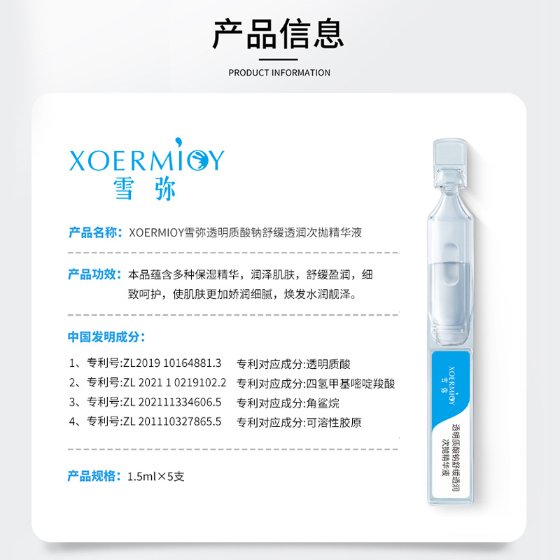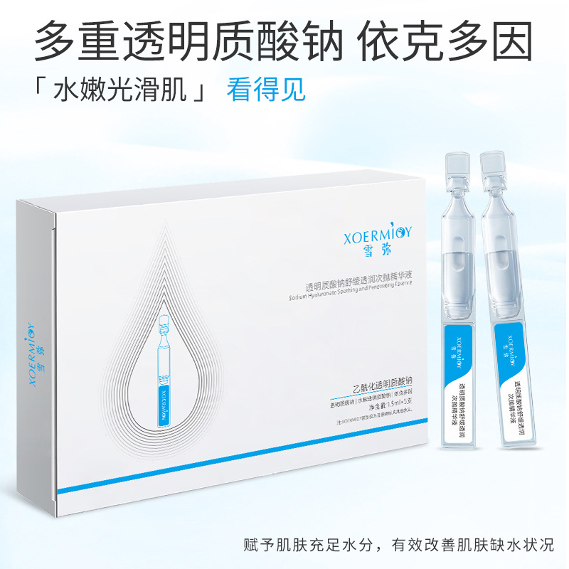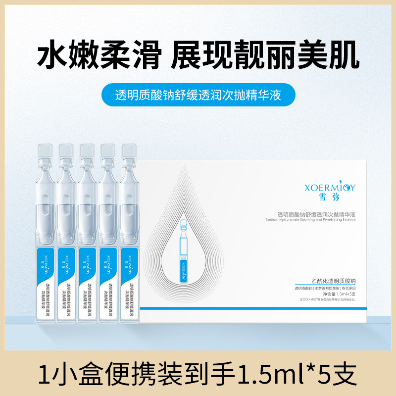 | nameOriginal | Xuemei sodium hyaluronate soothing and moisturizing disposable essence brightening skin color hydrating and firming ampoule liquid |
