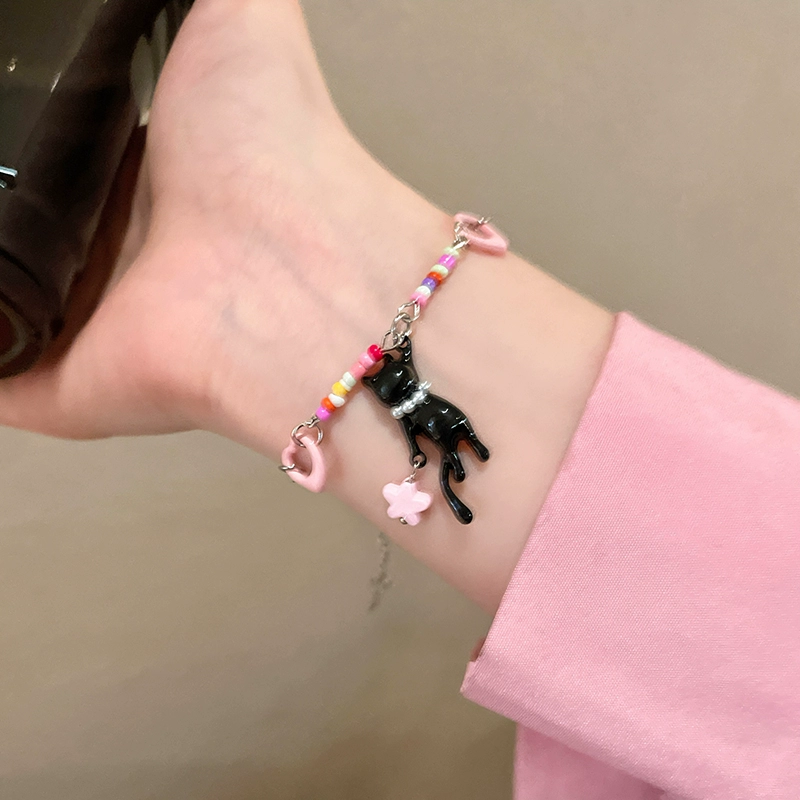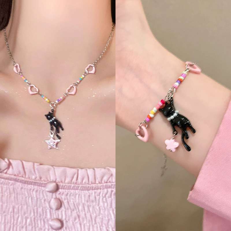 | nameOriginal | y2k black cat pink female sweet and cool clavicle chain beads |