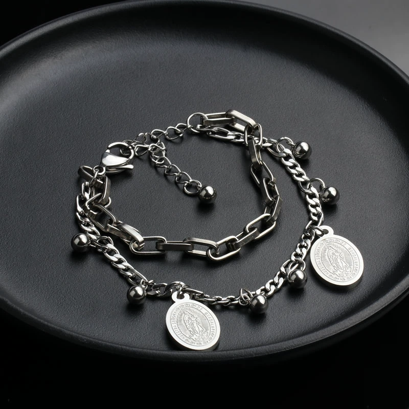 | nameOriginal | Y2K Harajuku hip-hop Internet celebrity titanium steel bracelet men's and women's double-layer lock trendy hand accessories Hong Kong style coin letter bracelet |