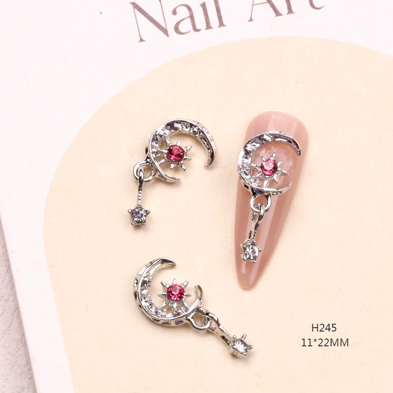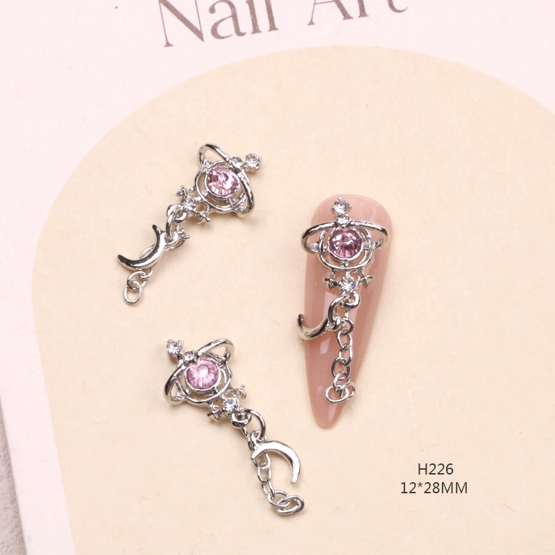 Y2K net red explosion pink LZ nail jewelry bow moon love chain love chain metal alloy nail accessories