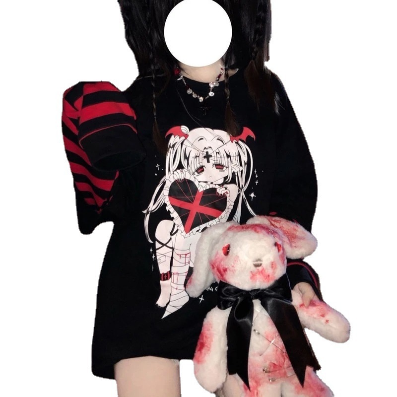 | nameOriginal | y2k Women's Gothic Style Sweater Women's Spring and Autumn Harajuku Dark Pullover Striped Fake Two-Piece Sweater |