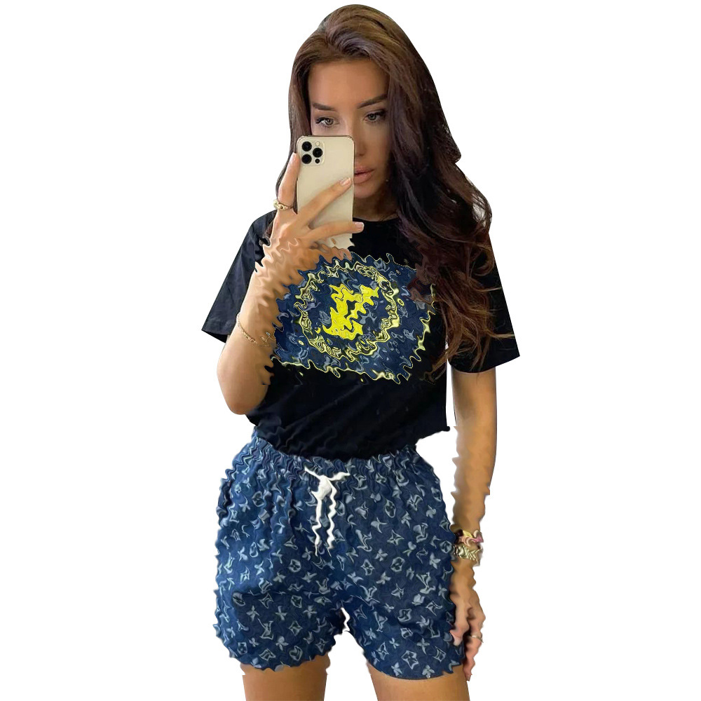 | nameOriginal | Y71395 European and American fashion cross-border women's clothing summer new printed short-sleeved shorts suit in stock |