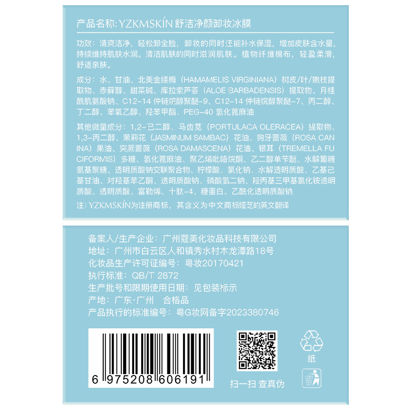 | nameOriginal | Ya Zhi Shu Jie Jing Yan makeup remover ice film 100 deep clean eyes, nose and lips mild non-irritating makeup remover wipes for women |