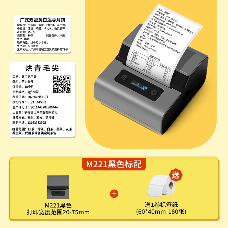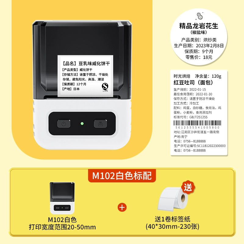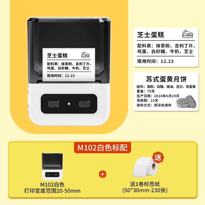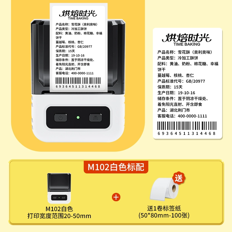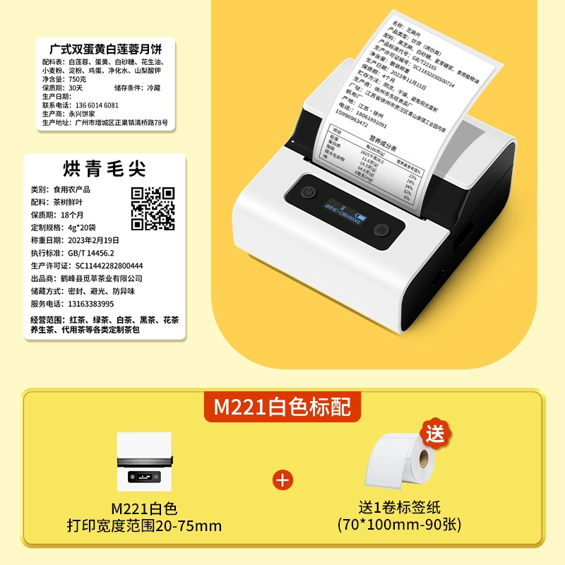 Yakolai M102 food label printer commercial small thermal self-adhesive sticker bulk commodity tea production date shelf life ingredient list certificate barcode price labeling machine