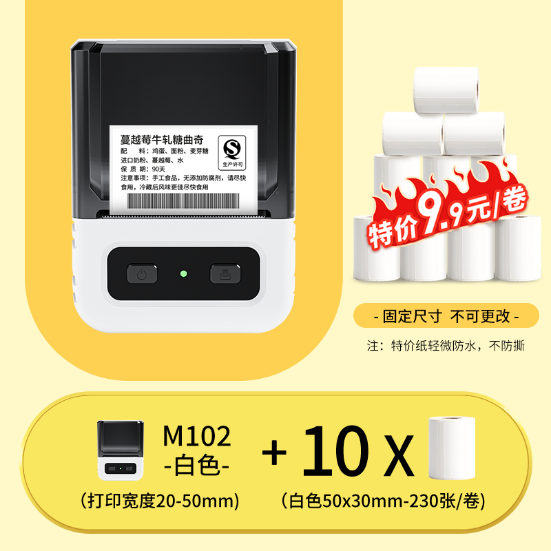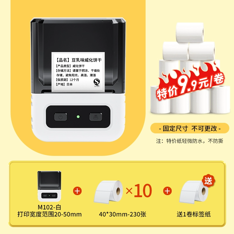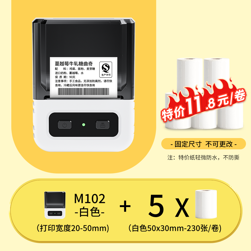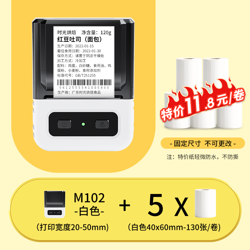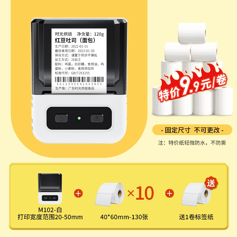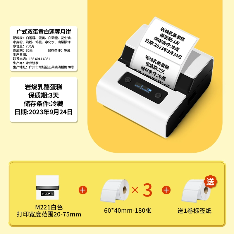 Yakolai M102 food label printer commercial small thermal self-adhesive sticker bulk commodity tea production date shelf life ingredient list certificate barcode price labeling machine