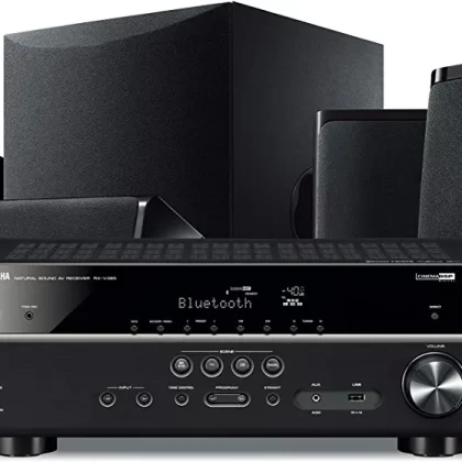 Experience clear and balanced sound with this 5.1-channel home theater system, which includes an AV receiver and a speaker package consisting of one center channel, two front channels, two surround speakers, and a subwoofer. With this easy-to-use system, you can enjoy your favorite movies, TV shows, music, and video games all in one place.