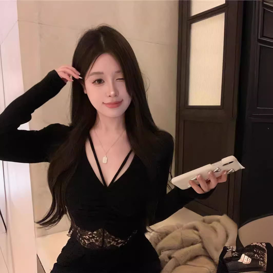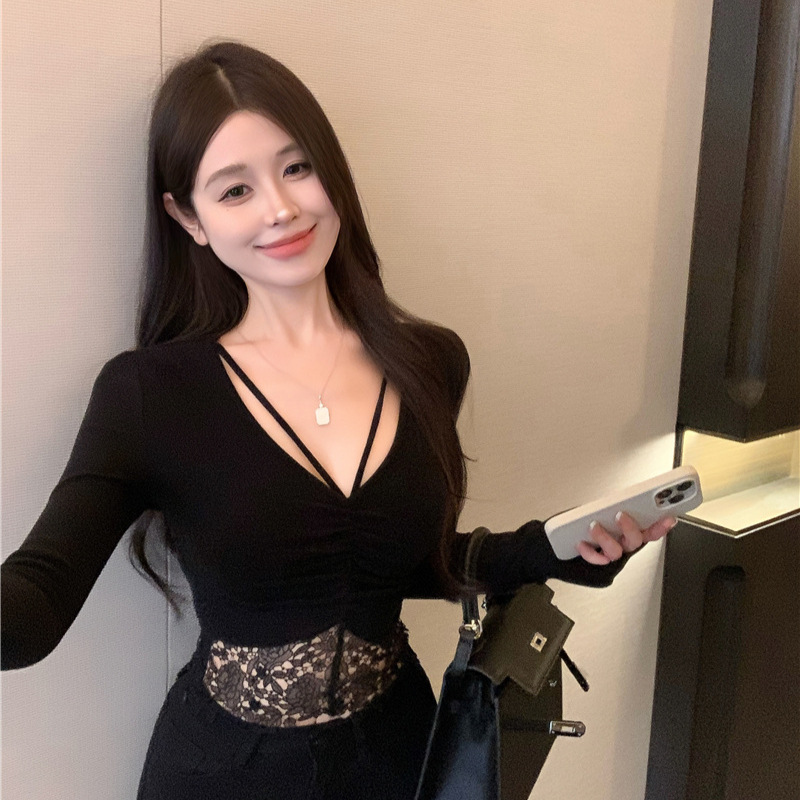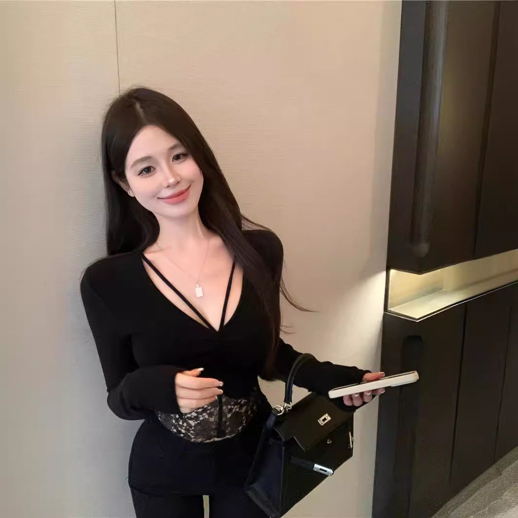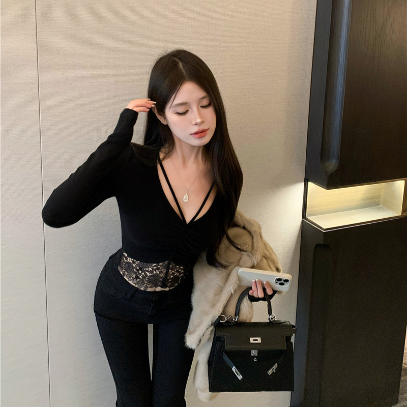 | nameOriginal | Yanduo hot girl sexy V-neck long-sleeved top women's stitching lace edge slim bottoming shirt T-shirt top women's 1622 |