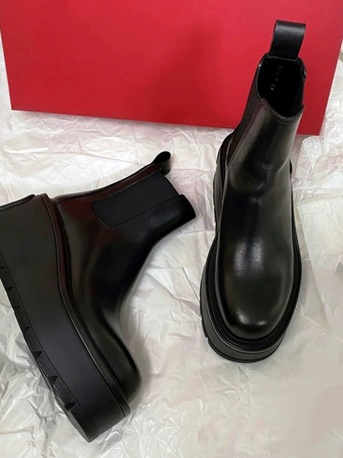 | nameOriginal | Yang Mi genuine leather short boots for women heightening ultra thick sole Chelsea boots black elastic sleeve platform shoes short boots |