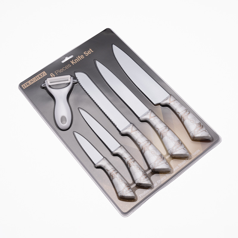 Yangjiang Knives Stainless Steel Chef Knife White Marble Handle Melon Planer Cutting Vegetables Full Set Gift Suction Card suit
