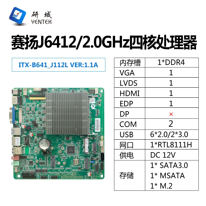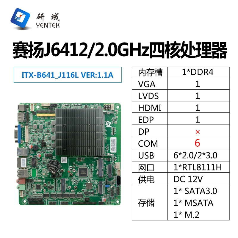 | nameOriginal | Yanyu B641 mini ITX industrial control motherboard Celeron J6412 all-in-one machine 5G dual network port 6 string quad core fanless |