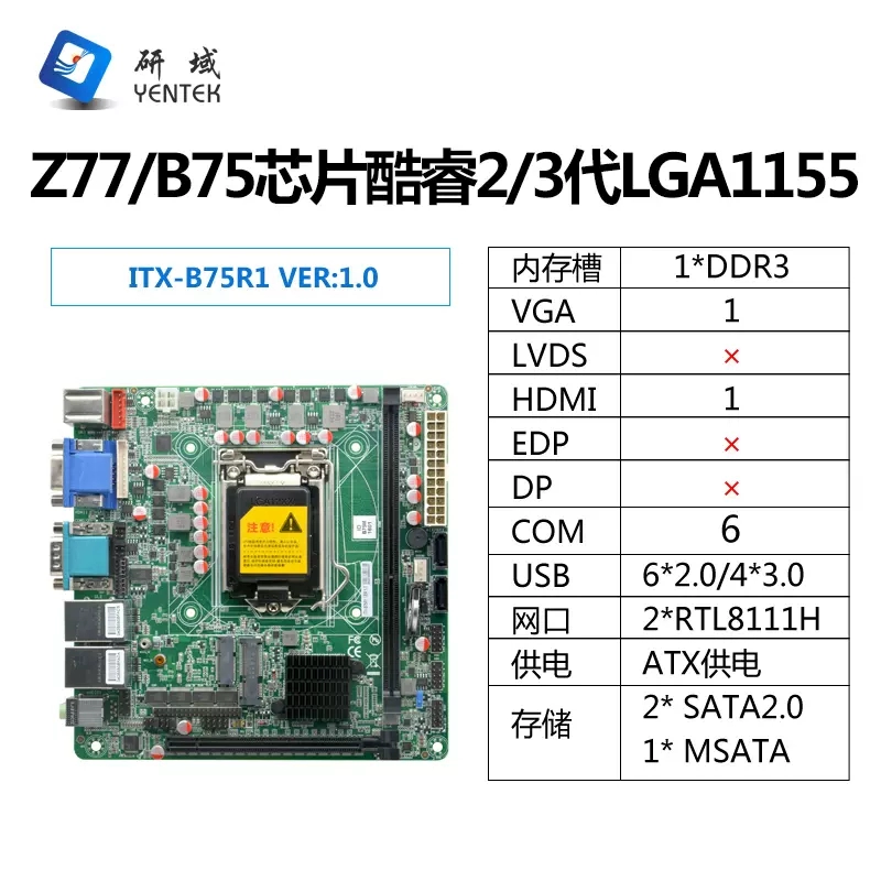 | nameOriginal | Yanyu B75M1 industrial control motherboard 2/3 generation 1155H61 Z77 mini ITX industrial computer DVI dual network port 6 strings |