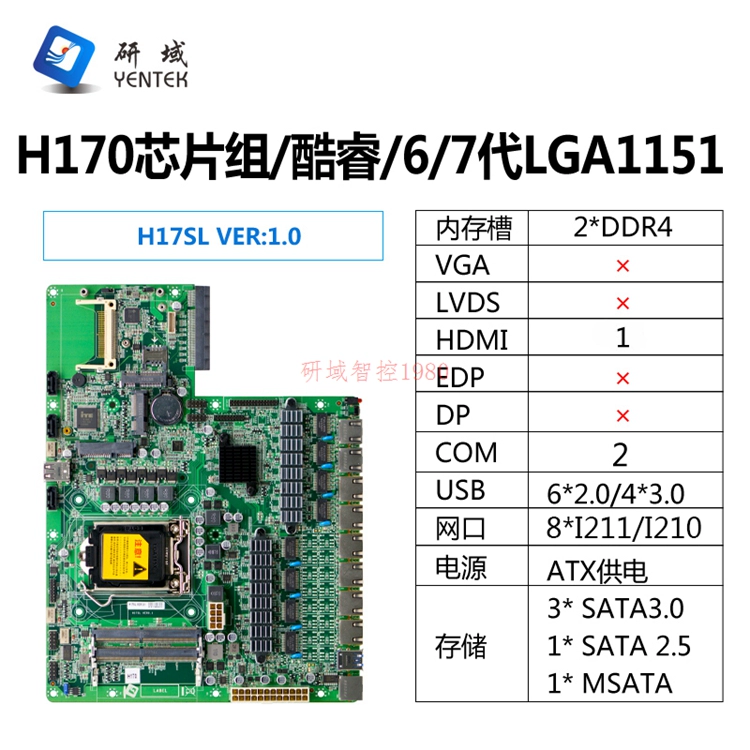 | nameOriginal | Yanyu H17SL6/7 generation Gigabit fiber H170 soft routing industrial control motherboard 8 network ports LGA1151 pin optical port |