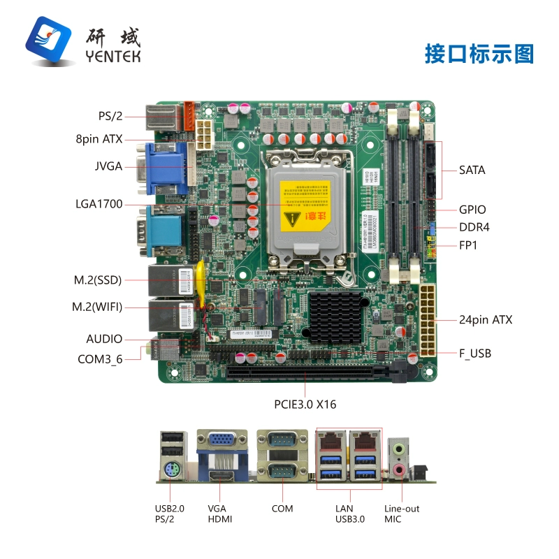 | nameOriginal | Yanyu H610M1 mini ITX industrial control motherboard 12/13 generation LGA1700 dual network port 6 serial port 2.5G desktop |