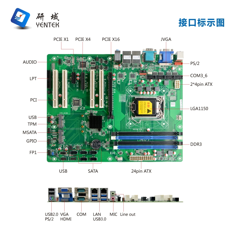 | nameOriginal | Yanyu H87DM industrial control motherboard 1150 server Z87 industrial computer ATX dual network 10 serial PCI/PCIE5SATA |