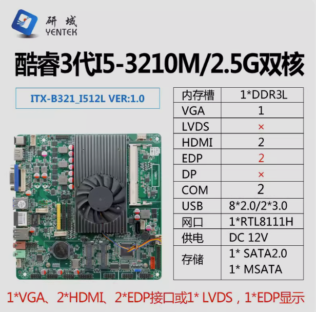 | nameOriginal | Yanyu Industrial Control B320 mini industrial control motherboard ITX all-in-one machine i5-3210M dual HDMI Gigabit network 6 string HM77 |