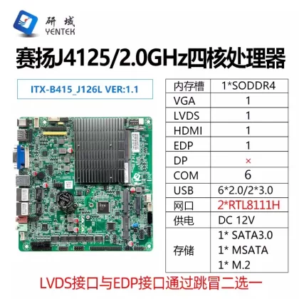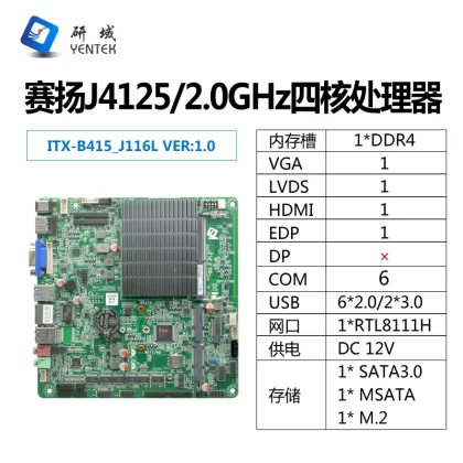 | nameOriginal | Yanyu industrial control B415 industrial control motherboard J4125 quad-core MINI-ITX all-in-one fanless industrial computer 6 strings |