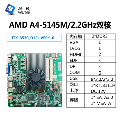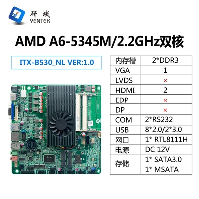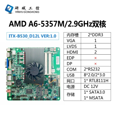 | nameOriginal | Yanyu industrial control B530 all-in-one motherboard AMD processor A6-5357M mini itx industrial control motherboard LVDS |