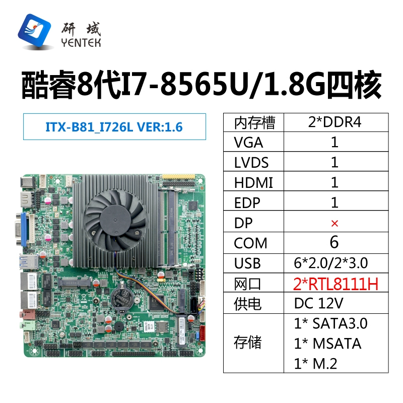 | nameOriginal | Yanyu Industrial Control B81 industrial control all-in-one motherboard 8th generation i5i7-8565U mini ITX industrial computer dual network 6 strings |