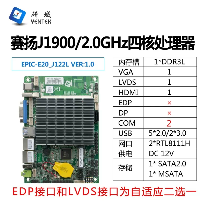 | nameOriginal | Yanyu Industrial Control E19 Industrial Control Motherboard J1900 All-in-one Machine 3.5-inch Mini ITX Advertising Dual Gigabit Network Card 6COM |