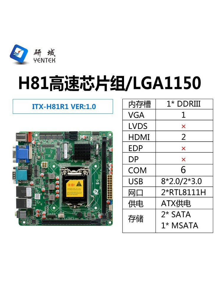 | nameOriginal | Yanyu Industrial Control H81R1 motherboard LGA1150 pin 4th generation Q85 supports HDMI10 serial port 8USB to replace P81E |