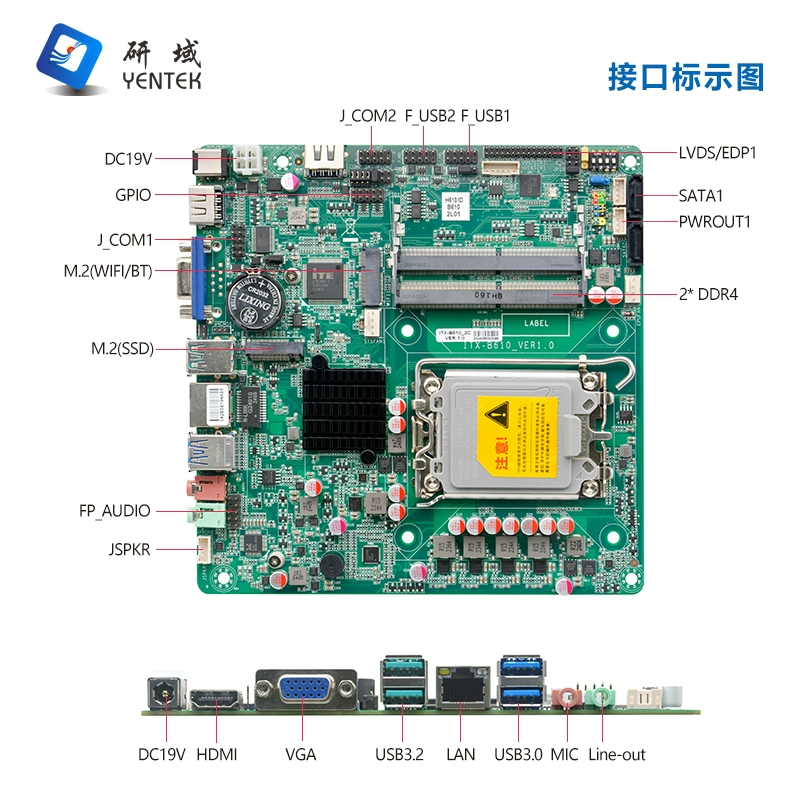 | nameOriginal | Yanyu industrial control mini ITX industrial control motherboard H610 chip 12/13/14 generation LGA1700 pin desktop all-in-one machine |