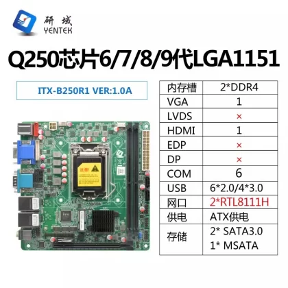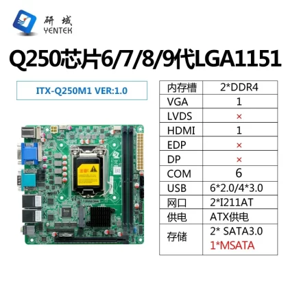 | nameOriginal | Yanyu Industrial Control Q250M1 Industrial Computer Motherboard B365 Mini ITX6/7/8/9 Generation 1151 Computer 2 Network Ports 6 Strings |