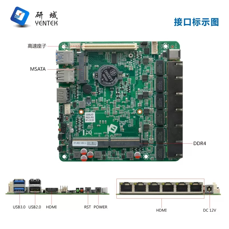 | nameOriginal | Yanyu industrial control R52V soft routing motherboard 6 Gigabit network port Celeron 5205U industrial computer motherboard Aikuai server |
