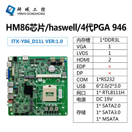 Yanyu Industrial Control Y86 all-in-one computer motherboard 4th generation PGA947 dual HDMI mini ITX industrial HM86LVDS