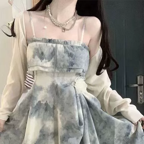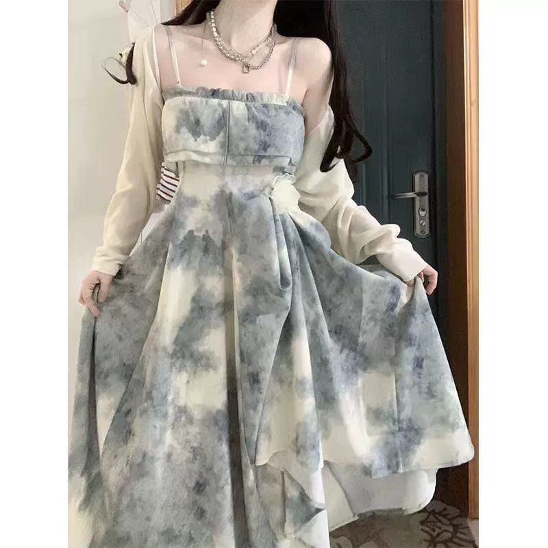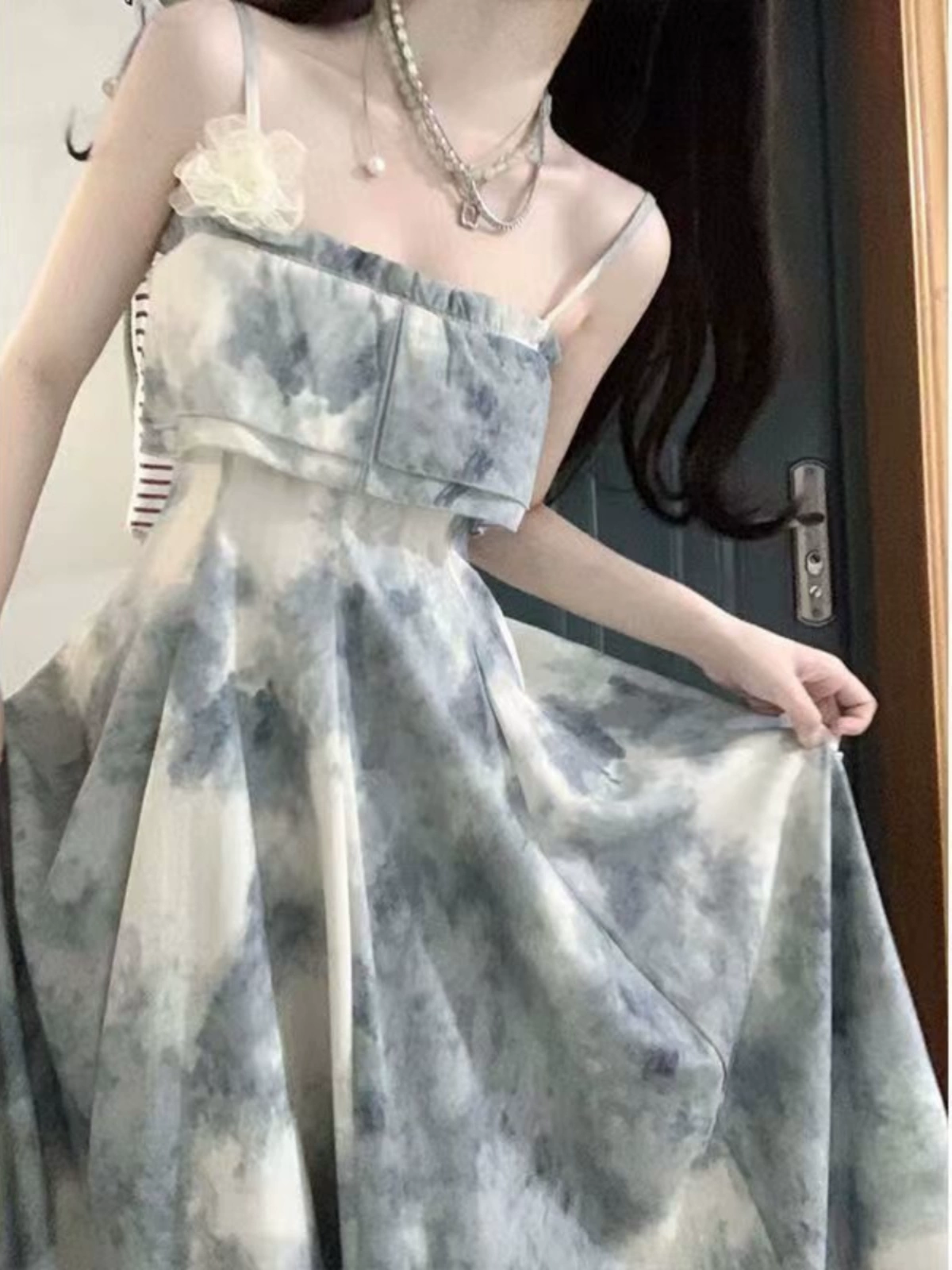 Yanyu Jiangnan smudged suspender dress waisted ink