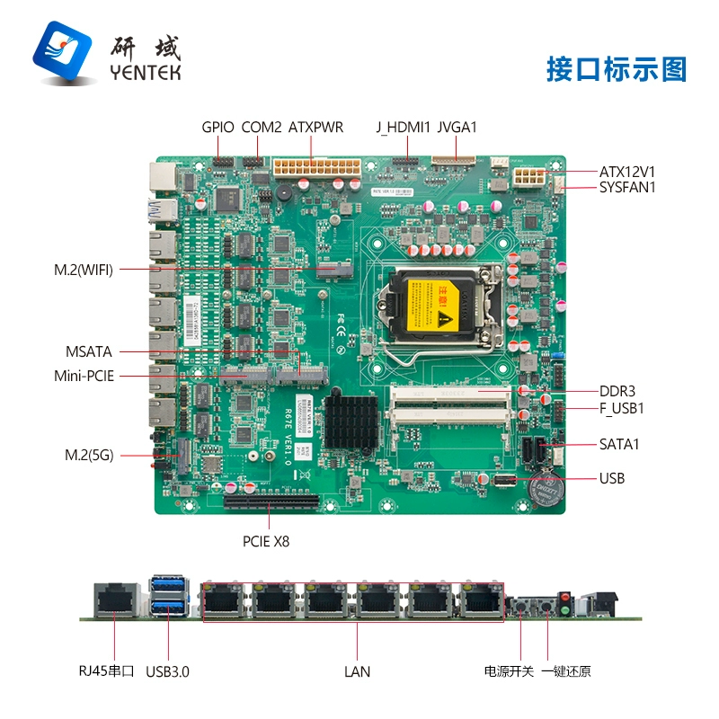 | nameOriginal | Yanyu R67E soft routing motherboard 6 Gigabit network port 2/3 generation LGA1155 B75 5G enterprise router PCIE |