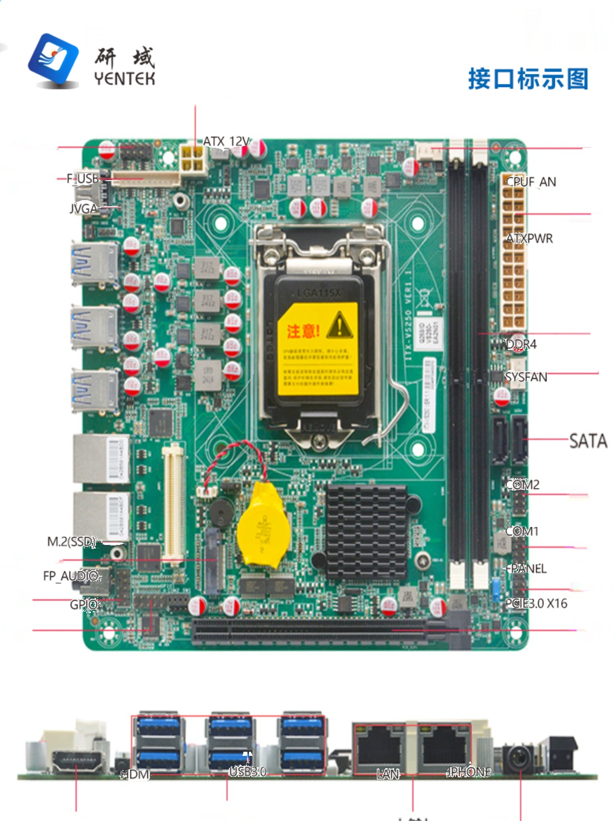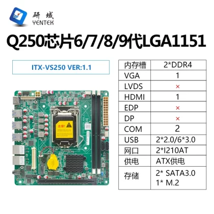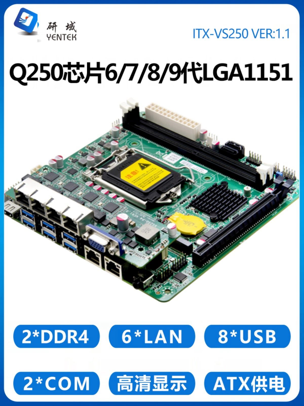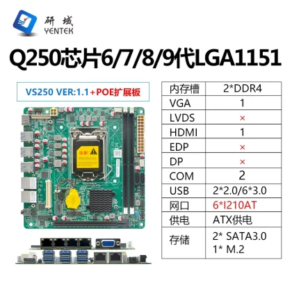 | nameOriginal | Yanyu VS250 industrial control motherboard 6 network ports 4POE2 string Q250 mini ITX LGA1151 industrial machine vision |