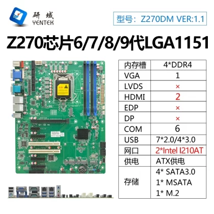 | nameOriginal | Yanyu Z370VM industrial computer motherboard 4/5G6/7/8/9 generation 1151-pin ATX industrial server dual network 6 strings |