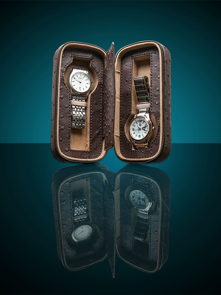 Yaotao (Accessories) Ostrich Pattern Leather Portable Watch Bag Zipper Leather Watch Storage Box Travel Watch Bag