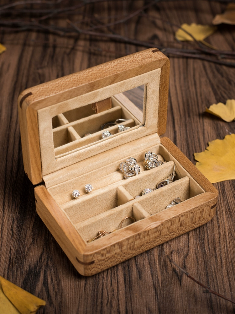 Yaotao (jewelry) elm pure solid wood portable makeup small jewelry box jewelry earrings earrings ring storage box