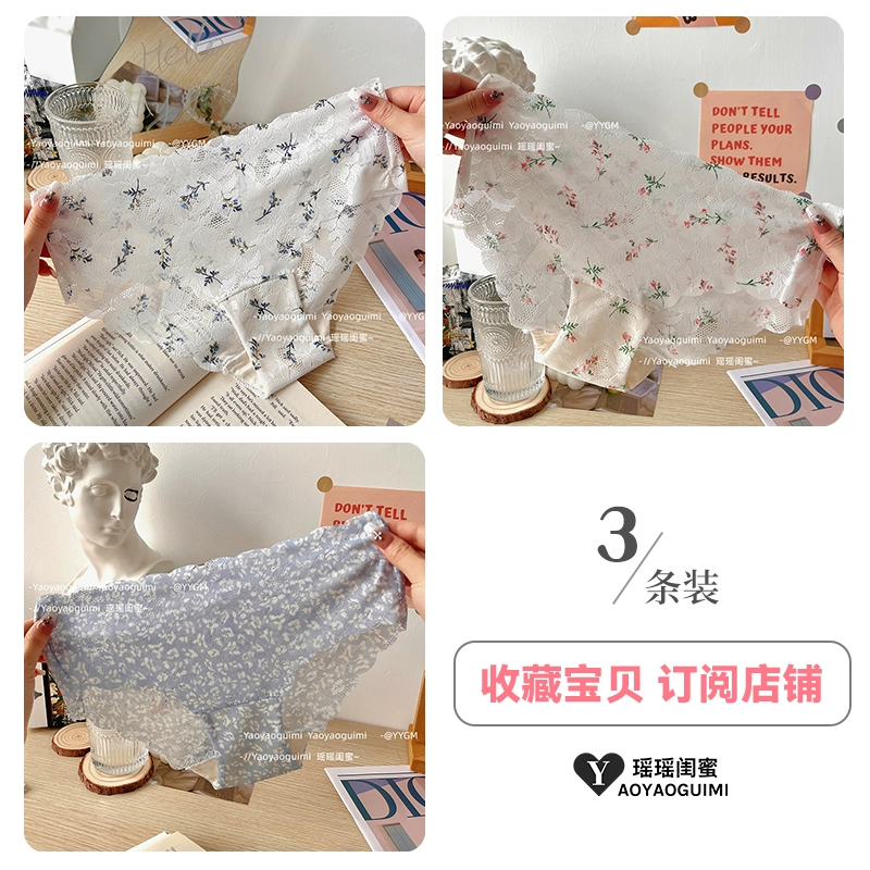 | nameOriginal | Yaoyao bestie Chinese style large size fat mm spring and summer thin sexy lace underwear women's jacquard transparent breathable briefs |