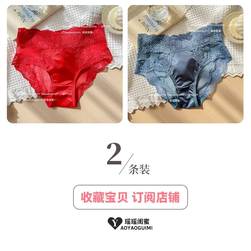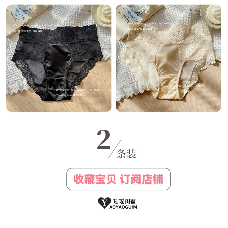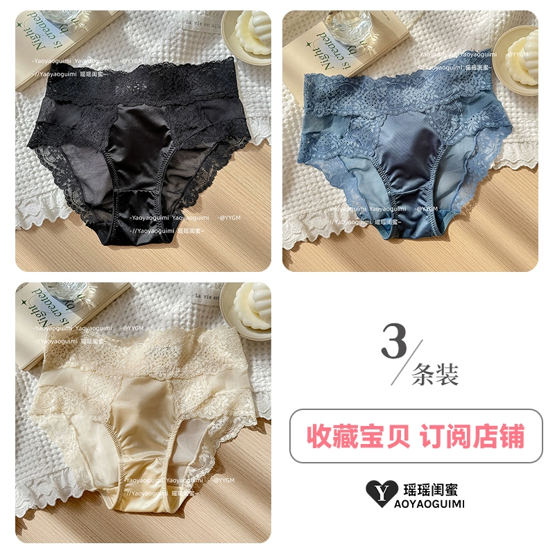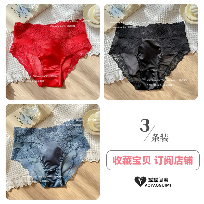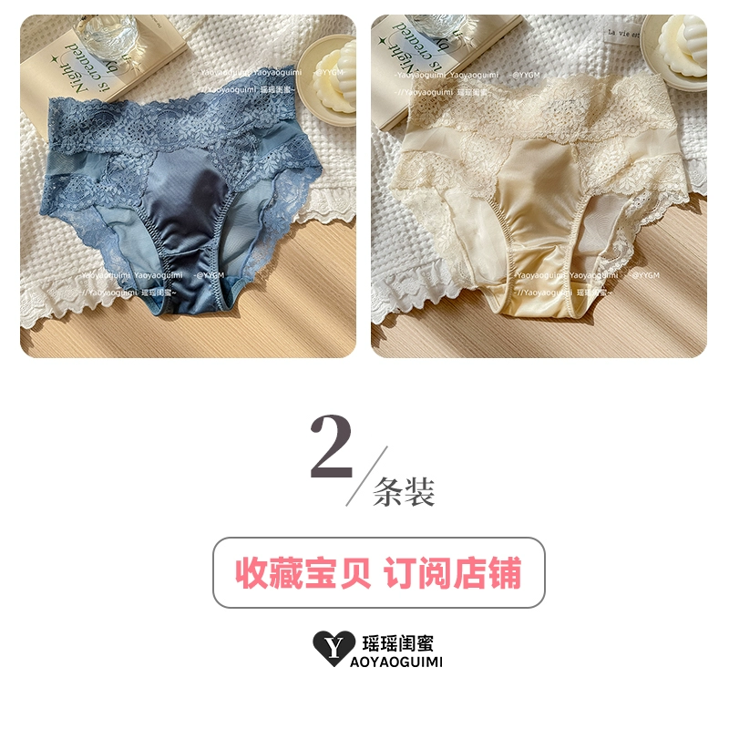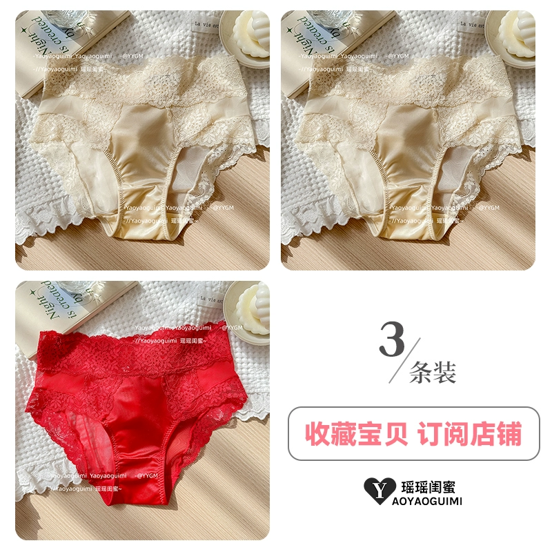 | nameOriginal | Yaoyao bestie high-end satin cream panties women's French sexy mid-waist lace breathable and comfortable briefs |