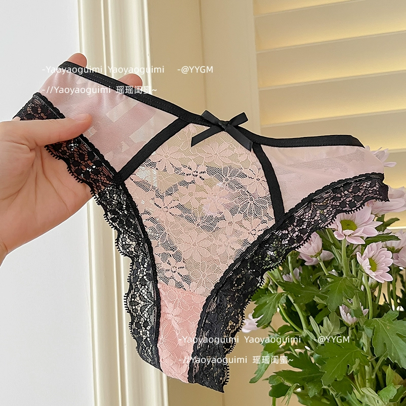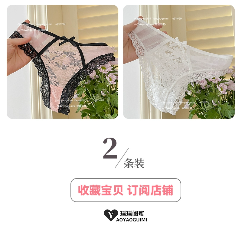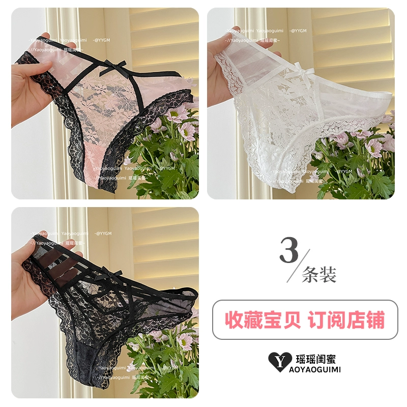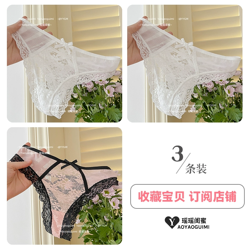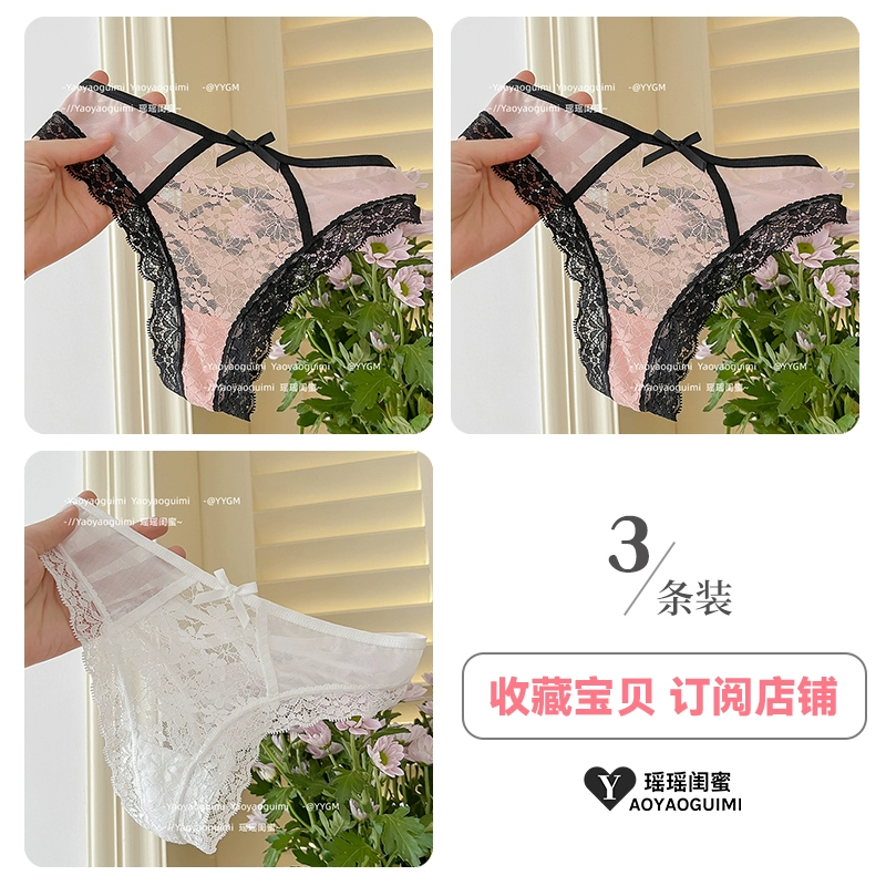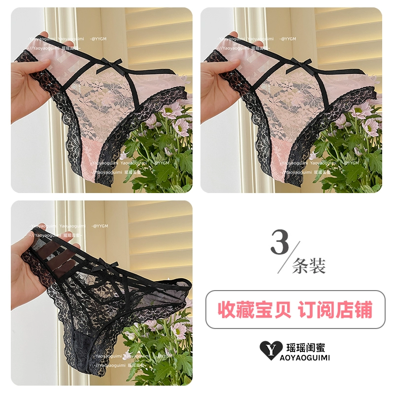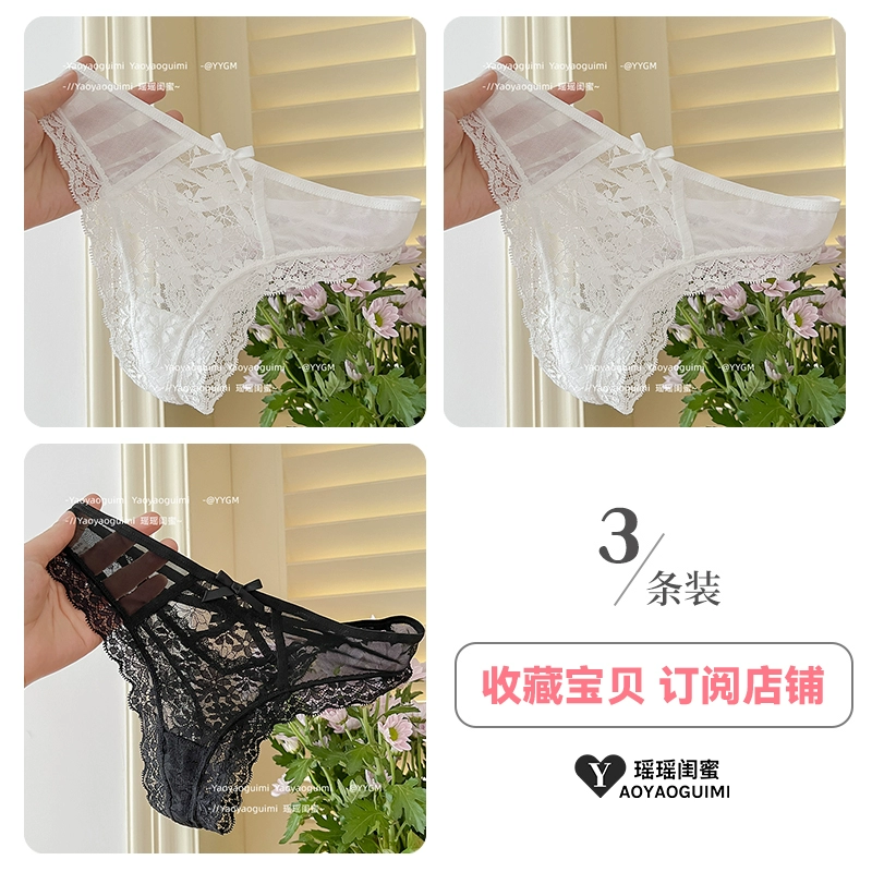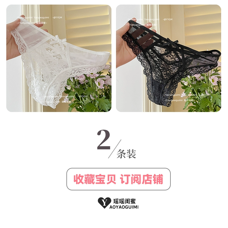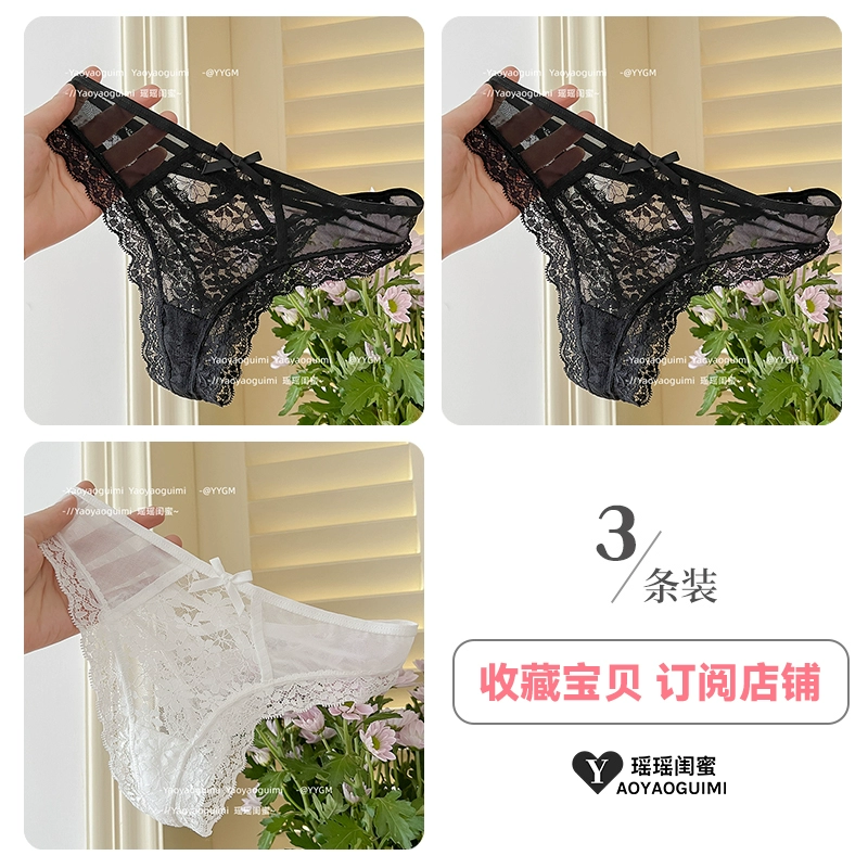 | nameOriginal | Yaoyao bestie hollow sexy lace panties women's summer thin breathable half-cover hip low-waist triangle thong head |