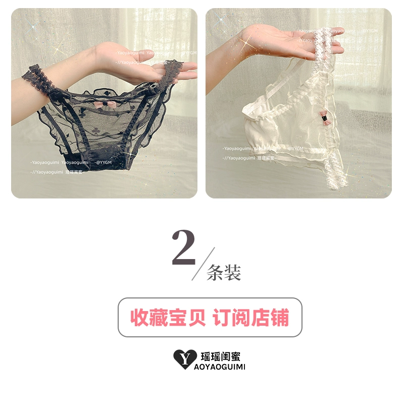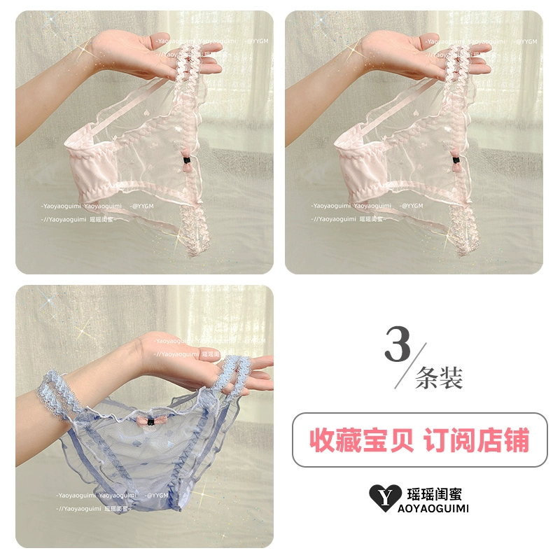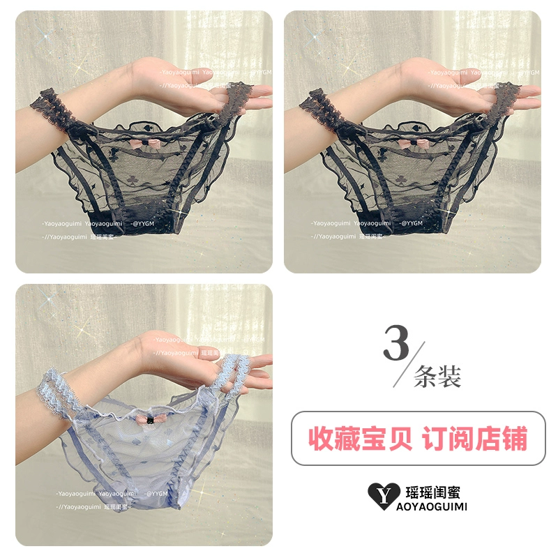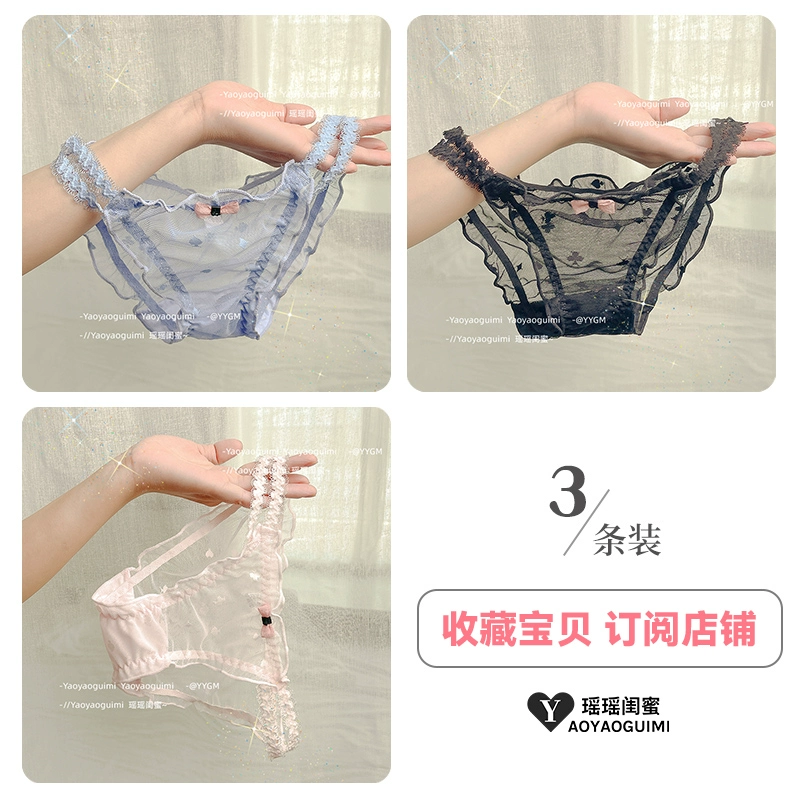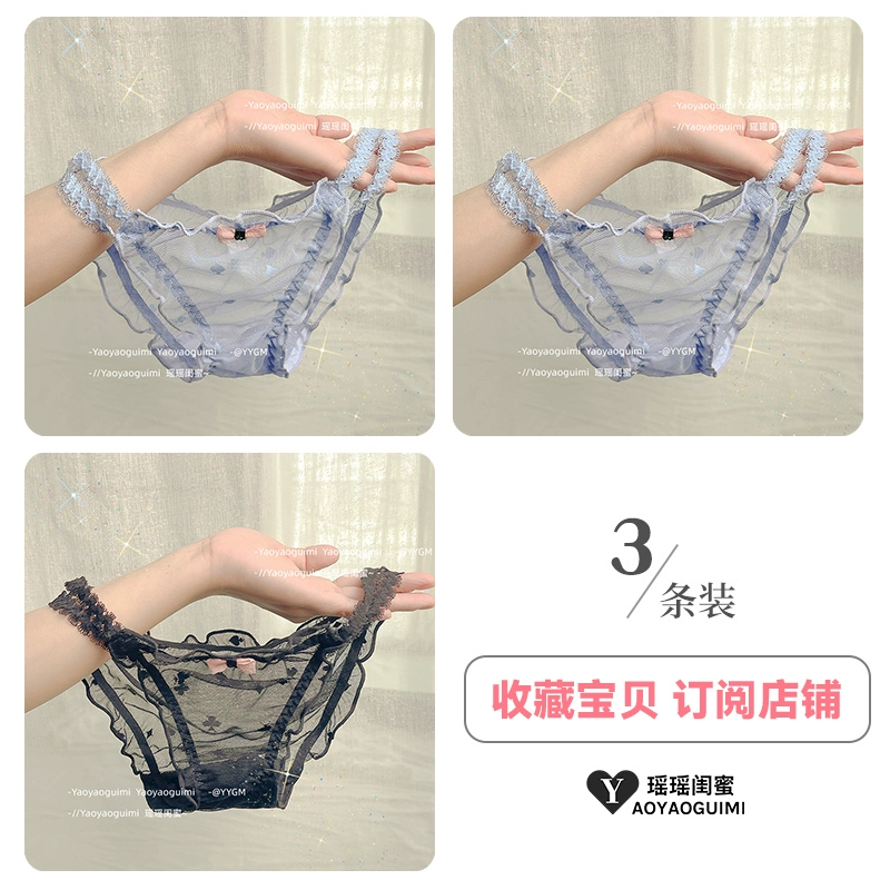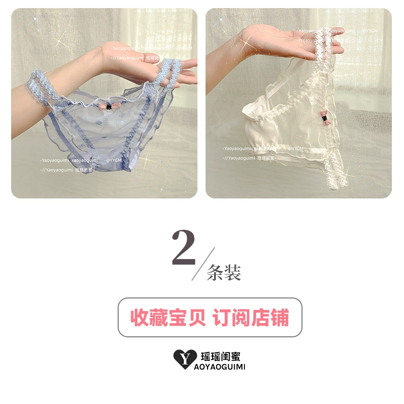| nameOriginal | Yaoyao bestie original design lace transparent double high elastic waistband blue panties feminine mesh see-through shorts |