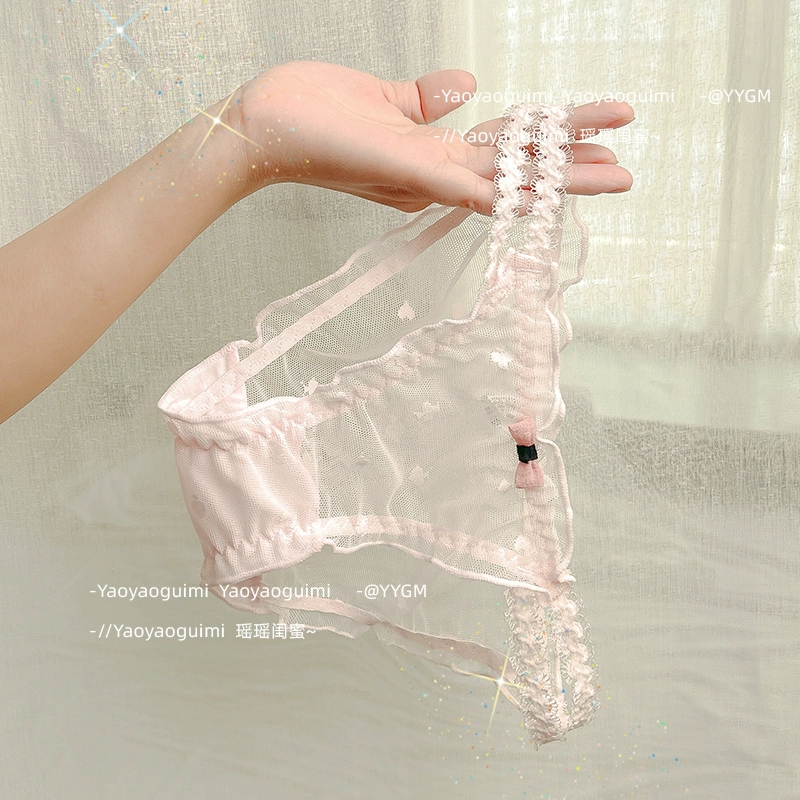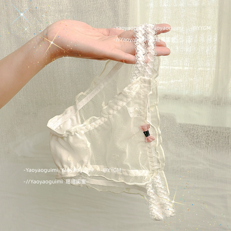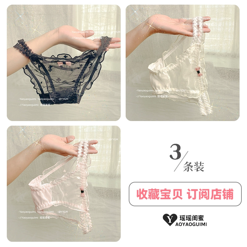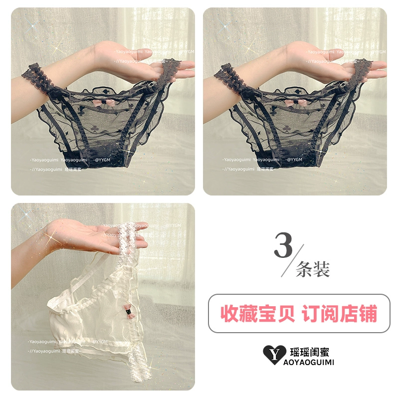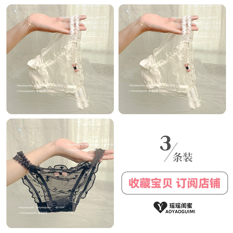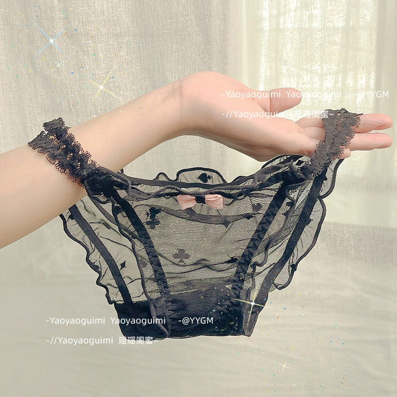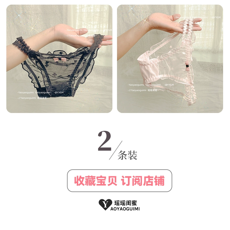 | nameOriginal | Yaoyao bestie original design lace transparent double high elastic waistband blue panties feminine mesh see-through shorts |