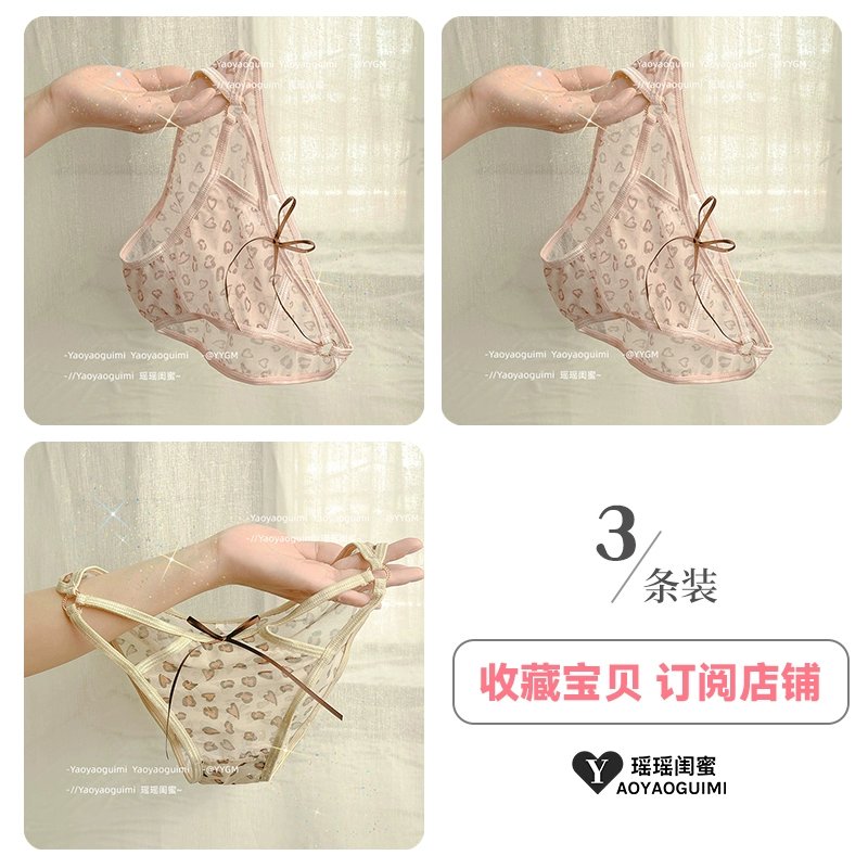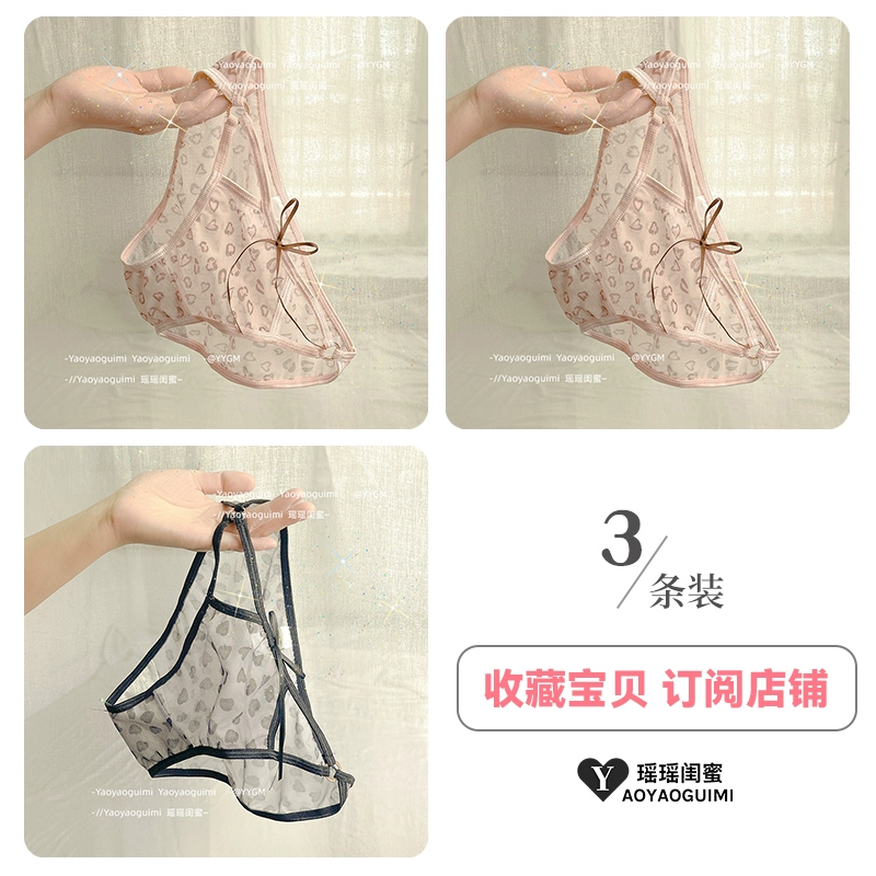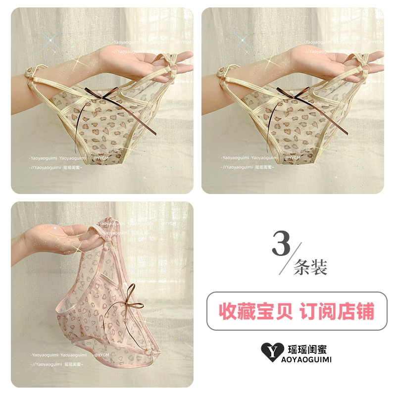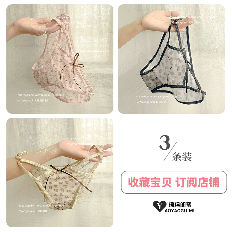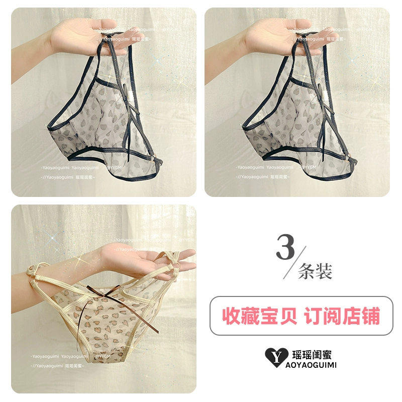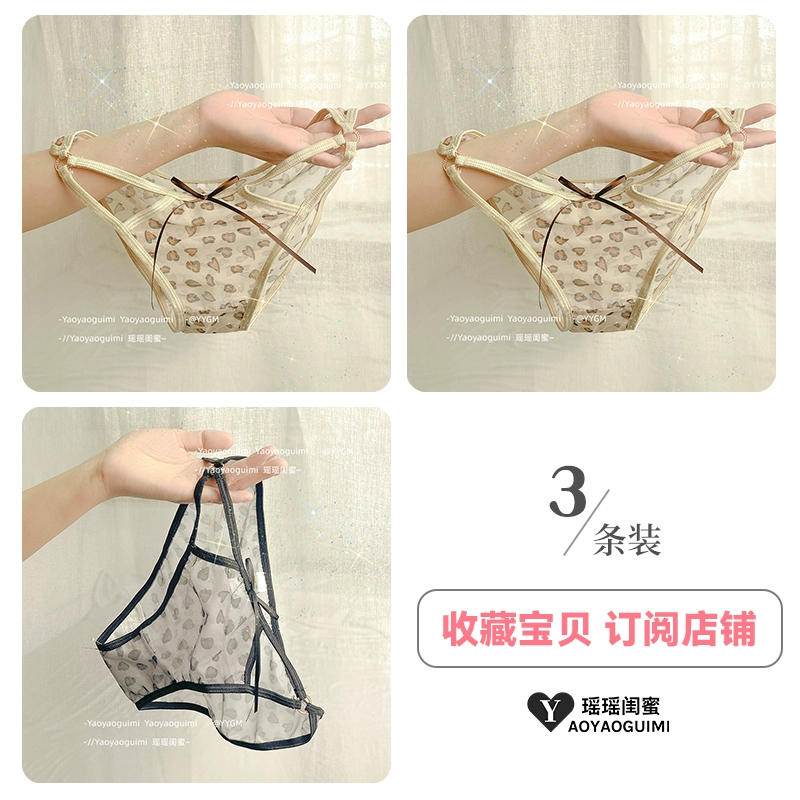| nameOriginal | Yaoyao bestie original design sexy leopard print underwear women's large size 200 pounds lace transparent mesh triangle shorts |