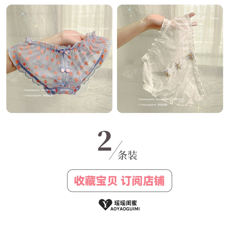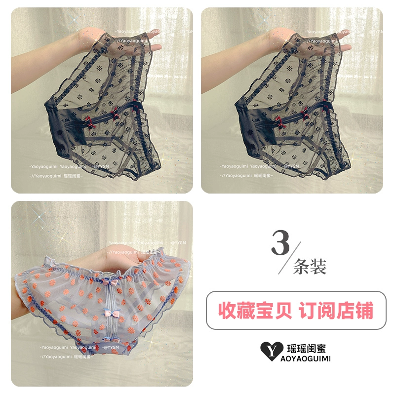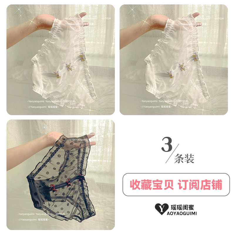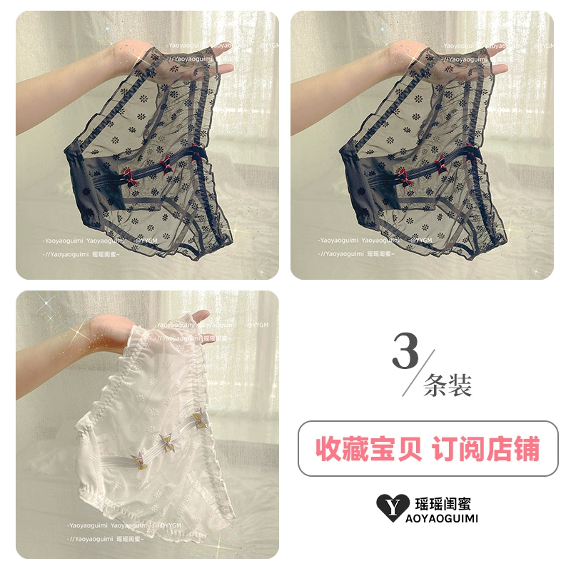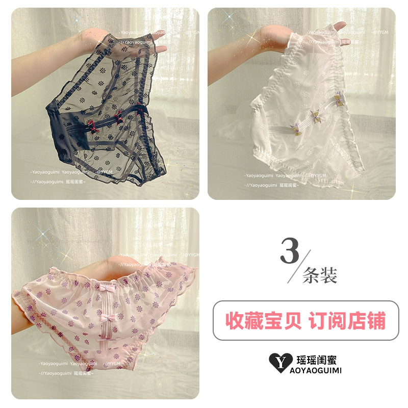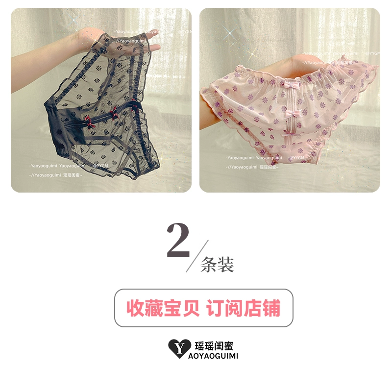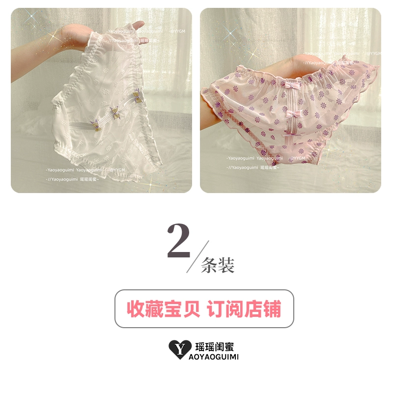 Yaoyao bestie’s lace mesh underwear, feminine low-waist butt-lifting, fashionable girly printed bow briefs