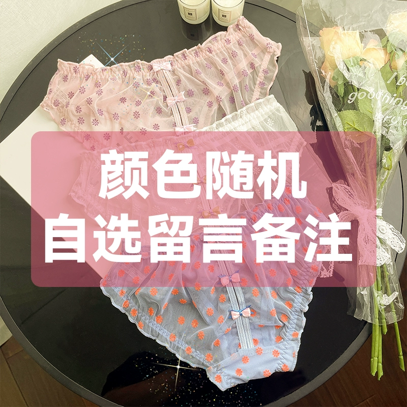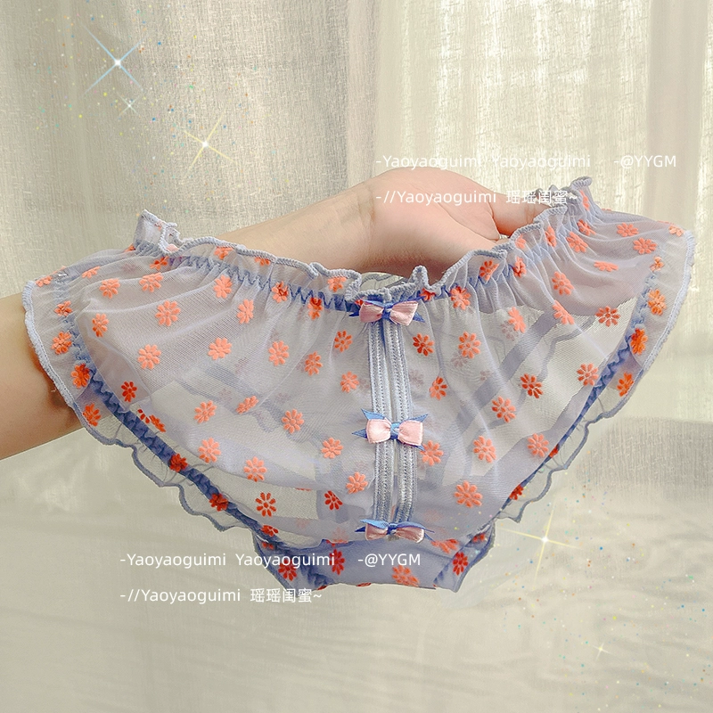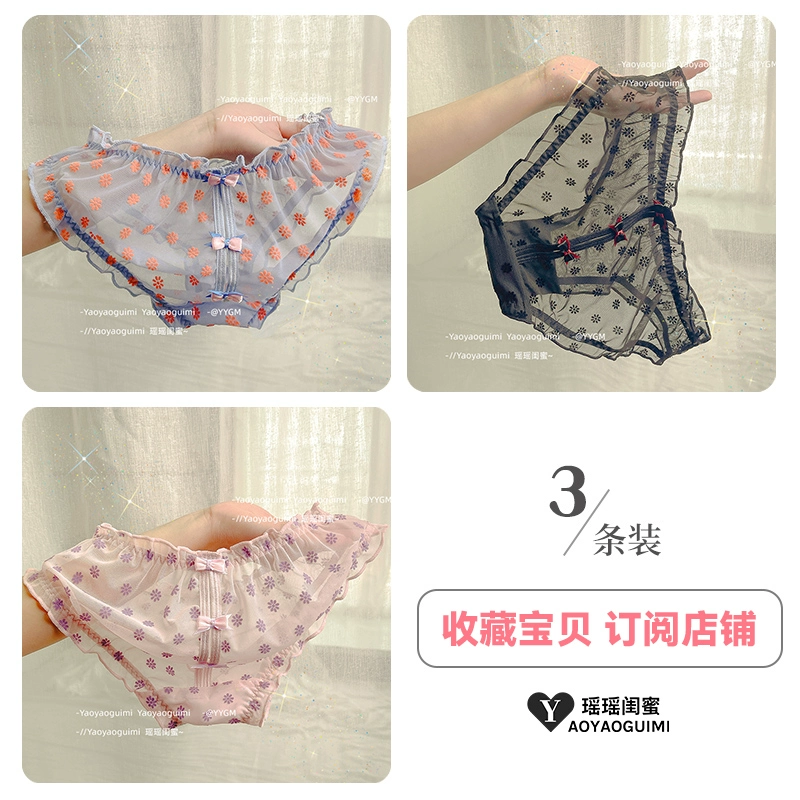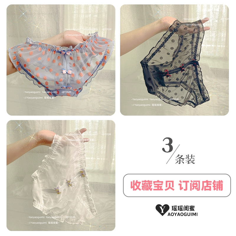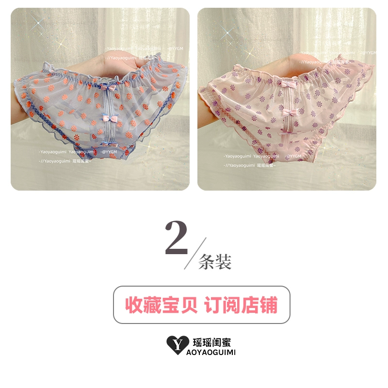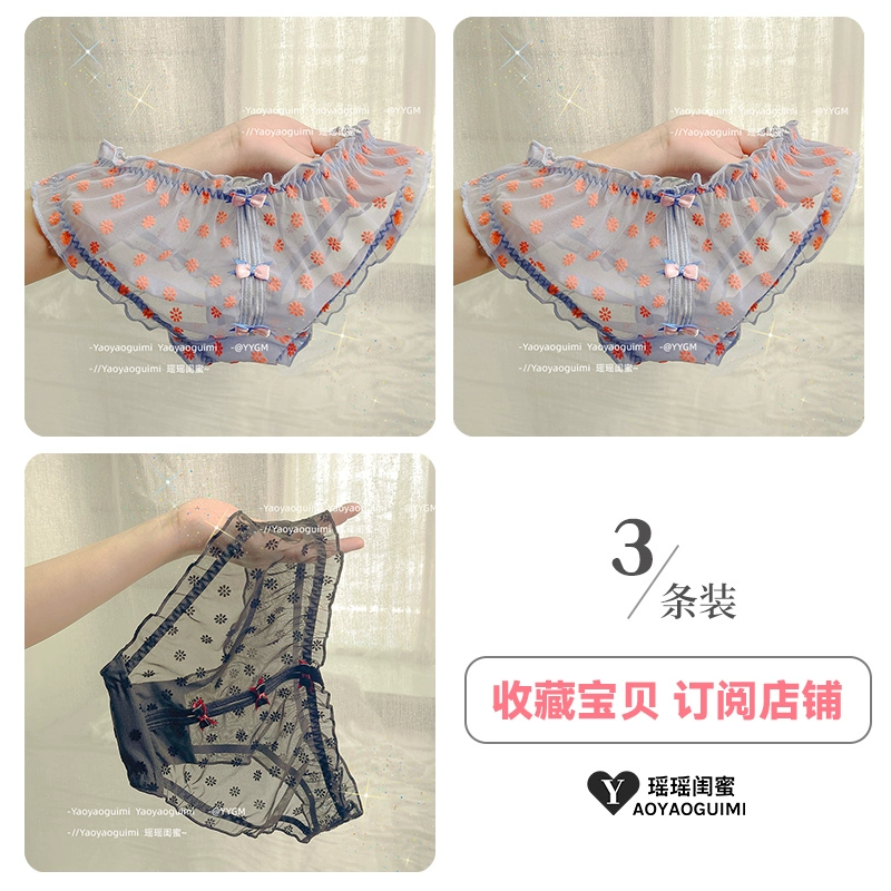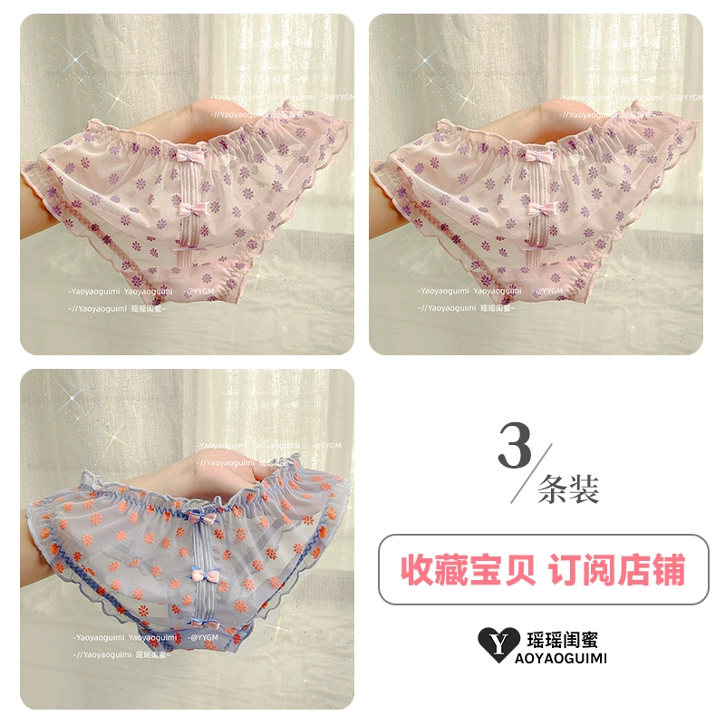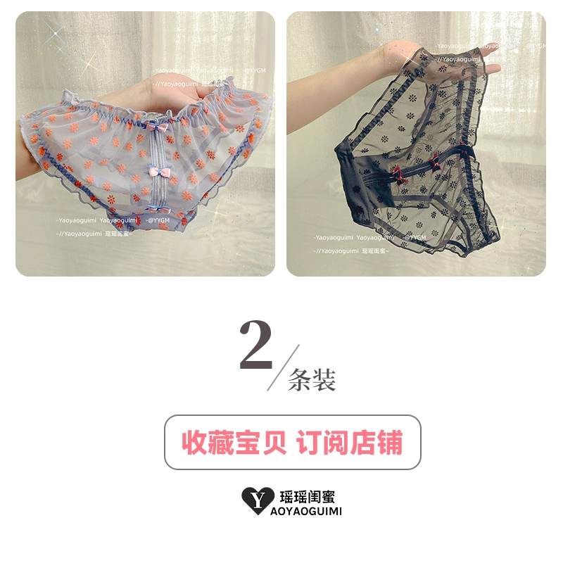Yaoyao bestie’s lace mesh underwear, feminine low-waist butt-lifting, fashionable girly printed bow briefs
