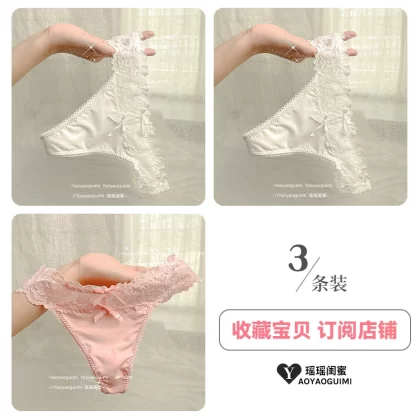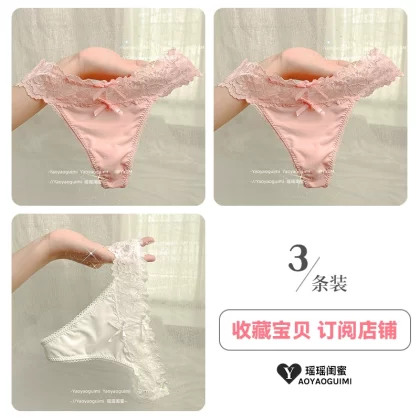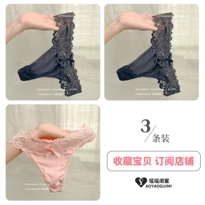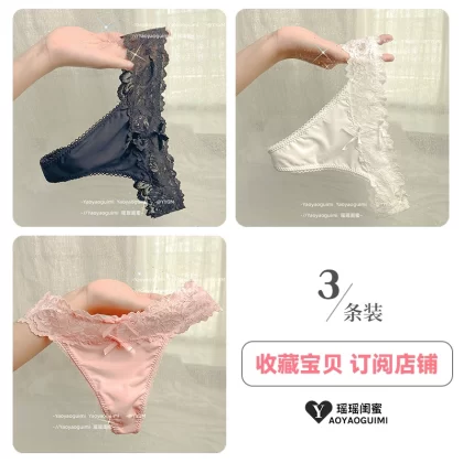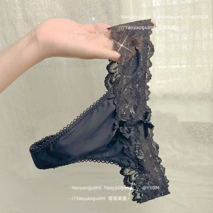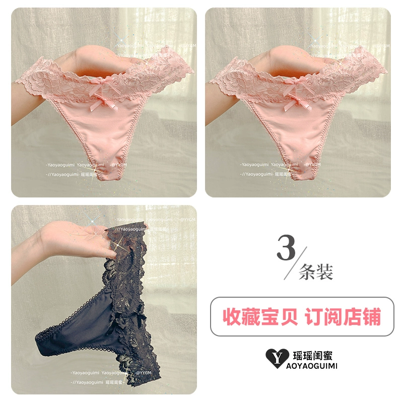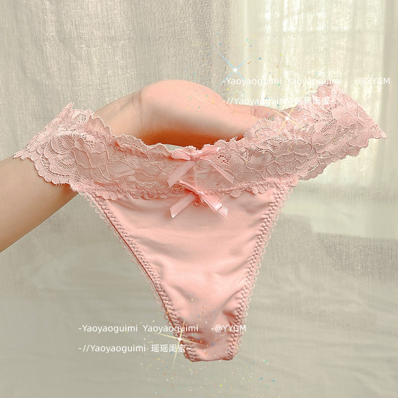 | nameOriginal | Yaoyao bestie's lace sexy thong women's underwear low-waisted hollow ice silk hot temptation pure lust pink T-pants |