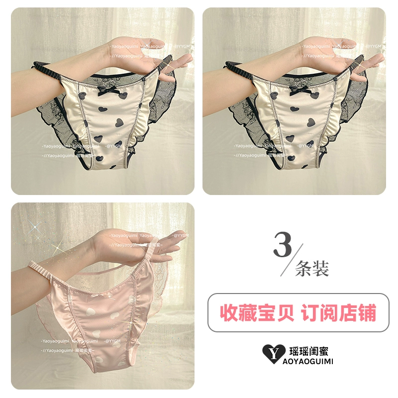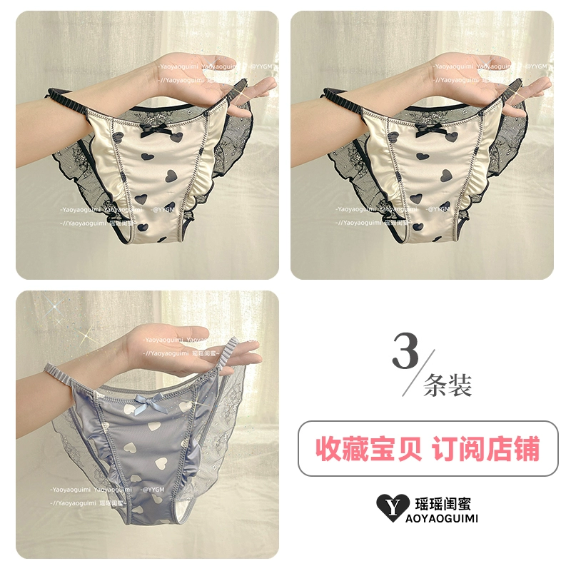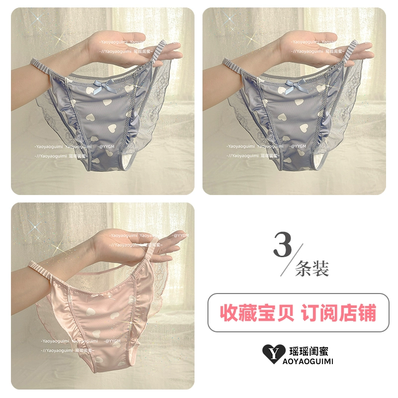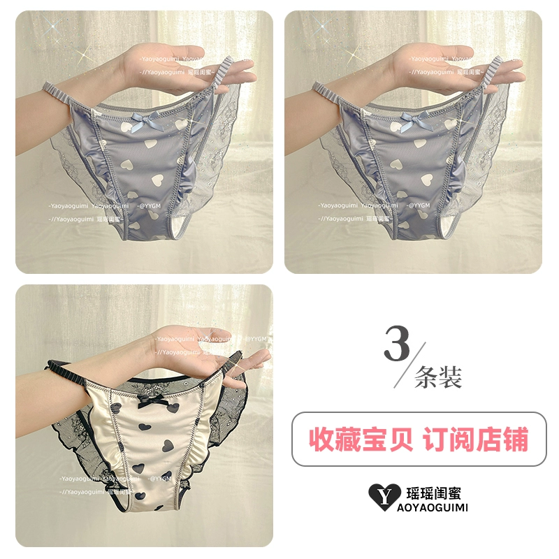 Yaoyao's best friend's original design high-end forged silky lace panties, feminine, caring and personalized high-slit women's panties