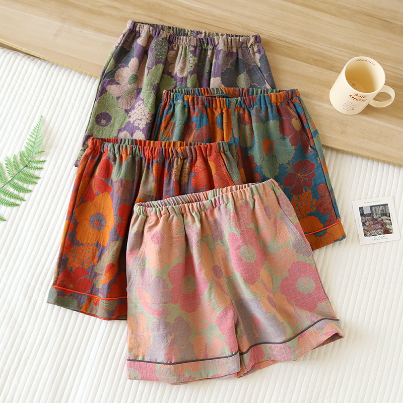 | nameOriginal | Yarn-dyed Jacquard Shorts Summer Women's Loose Cotton Double-layer Gauze Home Pants Thin Outer-wearable Pajama Pants |